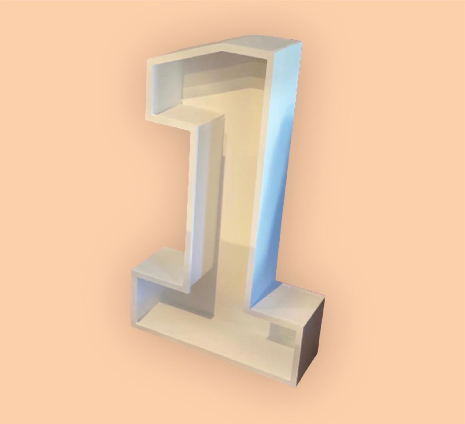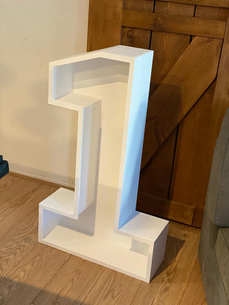 Houten cijfer nummer 1 die makkelijk te villen is met ballonnen.